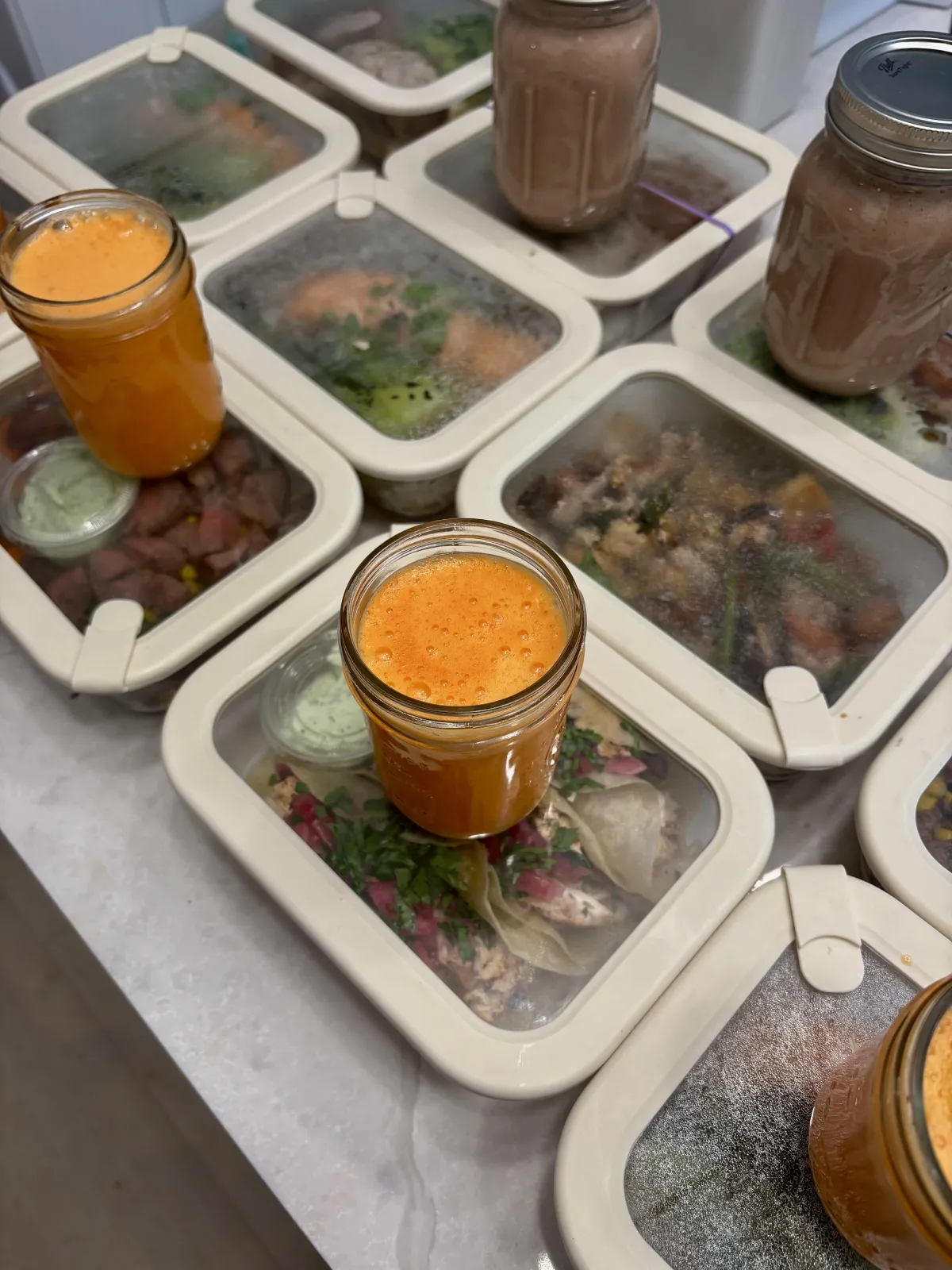 Each week, your meals are prepared fresh, either in your home or Dara’s kitchen. Everything is labeled, stored, and organized so your fridge looks like it was styled by wellness itself.